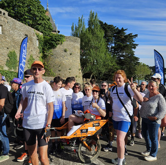 La Flamme Olympique👍merci à la ville de Pornic de nous avoir invité à ce beau moment de partage et de sport👌Honorine dans la joelette avec comme pousseurs nos locaux: Monique, Christian et Hyacinthe et des jeunes de la section sport adapté du CJAC: Baptiste, Dylan, Gabriel et leurs copains 🥰c’était super